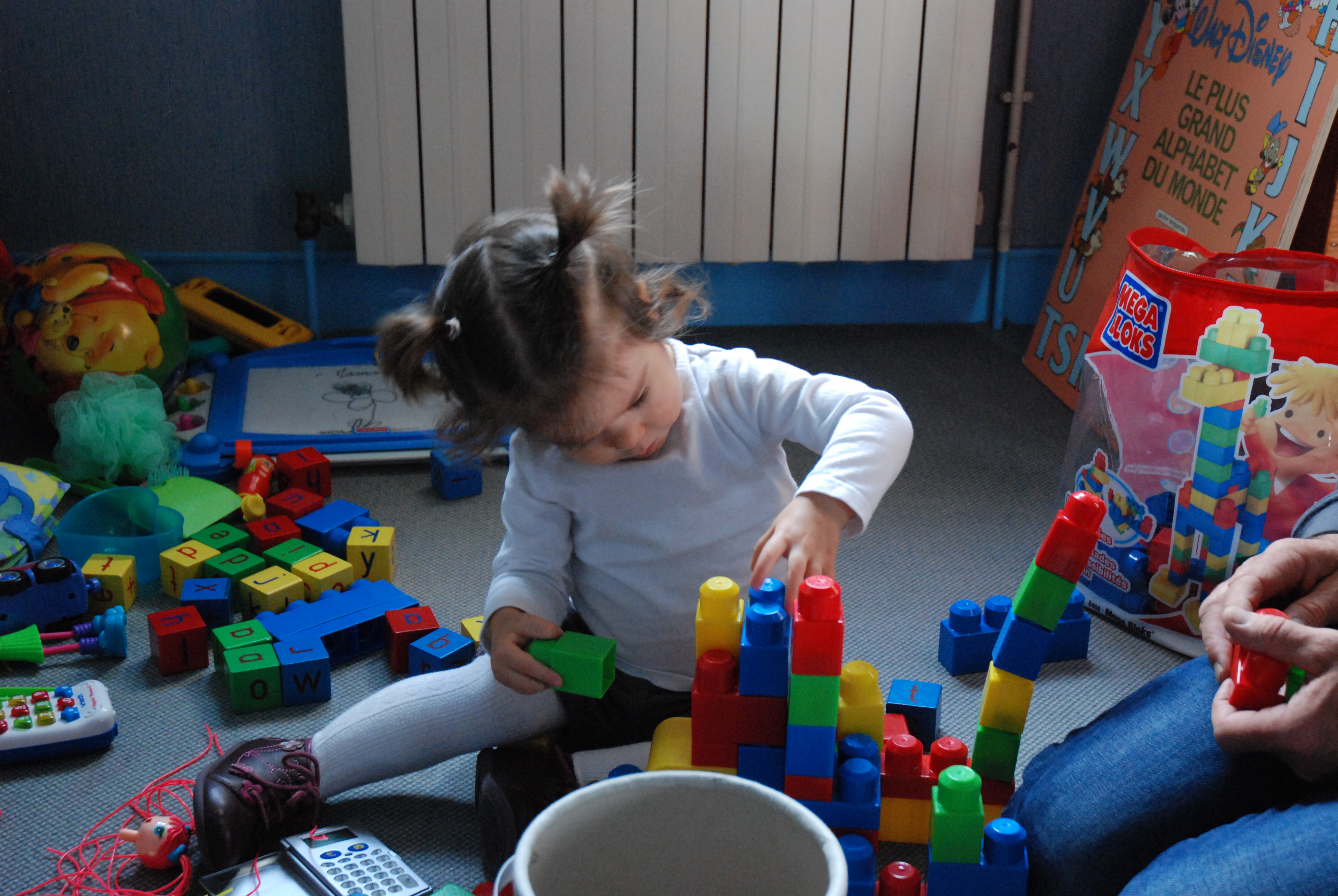 Manon qui joue dans sa chambre chez Papy Mamy