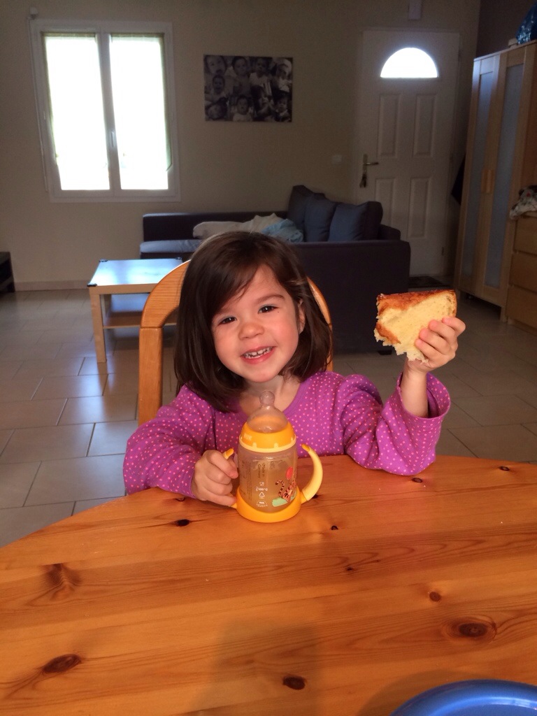Manon mange la brioche de Papy !