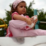 Manon préfère descendre du toboggan sans chaussures