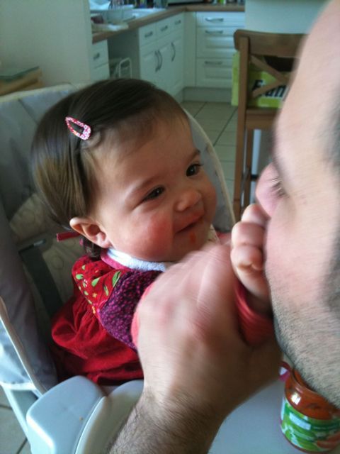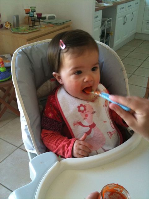 Manon dimanche 17 avril 2011 Publié le 17 avril 2011 par Elodie Papa a fait manger Manon pour lui donner des forces: Puis elle s’est mise debout dans le parc toute seule pour la première fois: